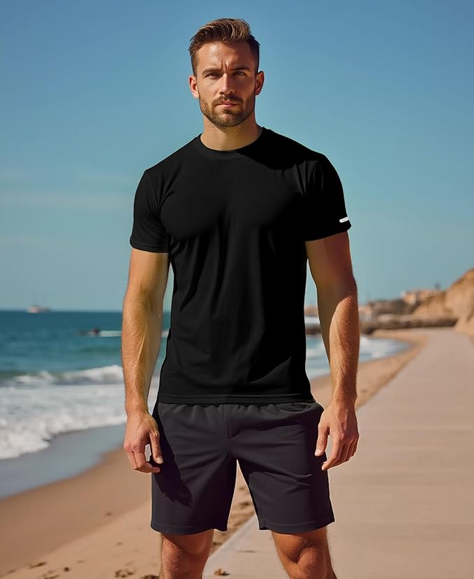 - Moisture Wicking Quick-Dry Fabric : Lightweight with moisture-wicking, this fabric keeps you cool and dry, even during intense gym sessions or outdoor summer activities. The stretchy fabric adapts to dynamic movements.
