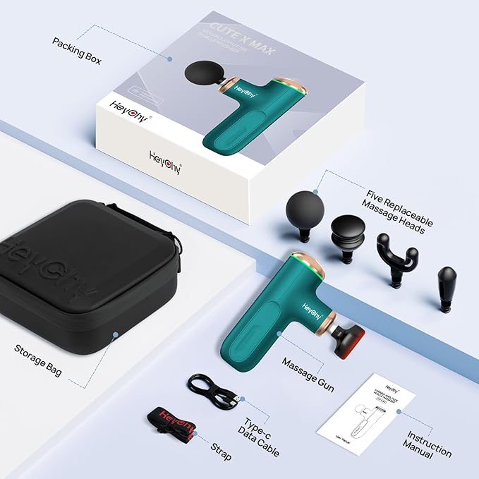 - CUSTOMIZED MUSCLE RELIEF: This percussion massage gun has five adjustable speeds and is equipped with 5 professional massage heads to meet your massage needs for different muscle parts. The compact and portable body is very suitable for daily relaxation and muscle relief before and after exercise