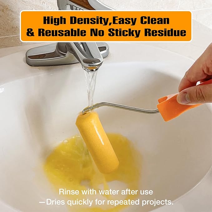 - Smooth, Lint-Free Application: High-density foam structure ensures zero fiber shedding, leaving a clean finish on cabinets, walls, and crafts. Perfect for glossy surfaces where traditional fabric rollers may leave lint or streaks.