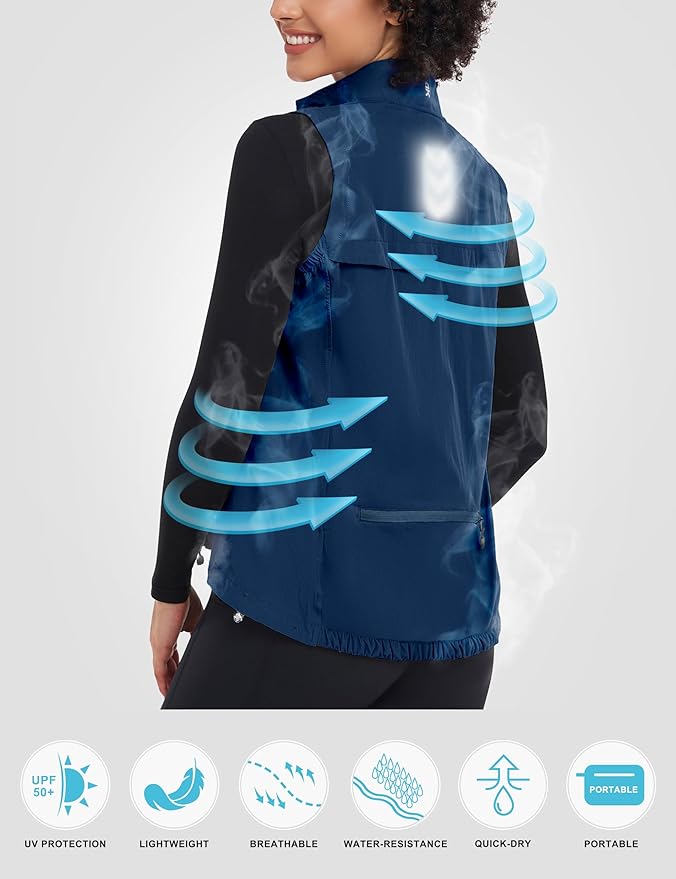 • Ultra-Light & Portable: This lightweight women's vest can be easily self-stored into its back pocket for effortless carrying.