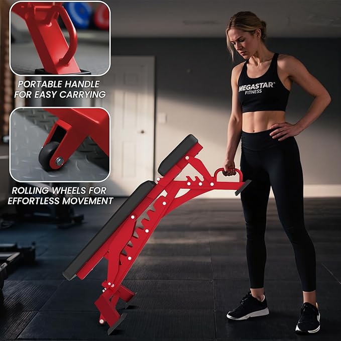 - Easy Assemble and Move: Setting up your exercise bench is quick and easy with all parts and tools neatly organized for effortless assembly. Simply tighten the components in minutes, and you're ready to go. The compact design ensures it doesn't take up much space, and with an added handle and two wheels, you can easily move the bench to any location for a flexible workout experience.