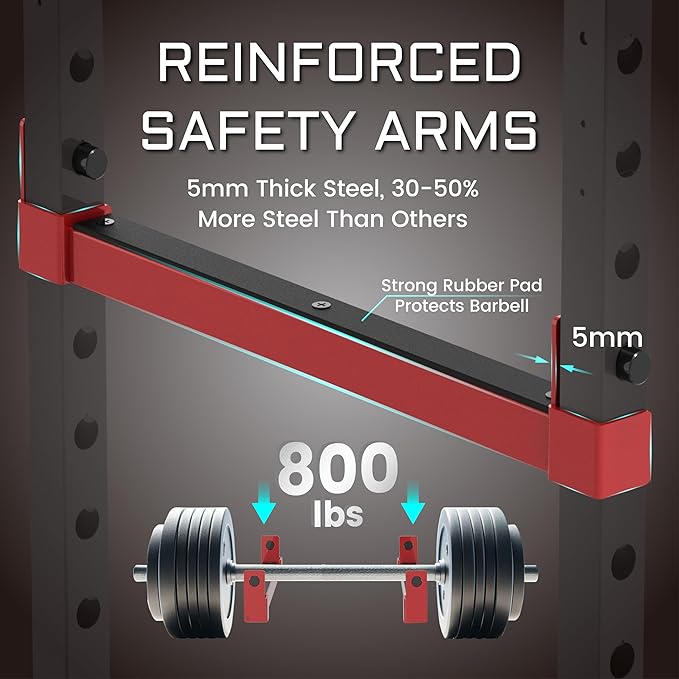 - 【STRONG TESTED 800 LBS. WEIGHT CAPACITY】- Don't put your safety in the hands of a squat rack that hasn't been tested. Our Squat Rack was tested at 2,000 pounds in order to get an official weight capacity of 800 pounds. Strong 2 x 2 Inch Steel Frame gives you peace of mind while you're working out.