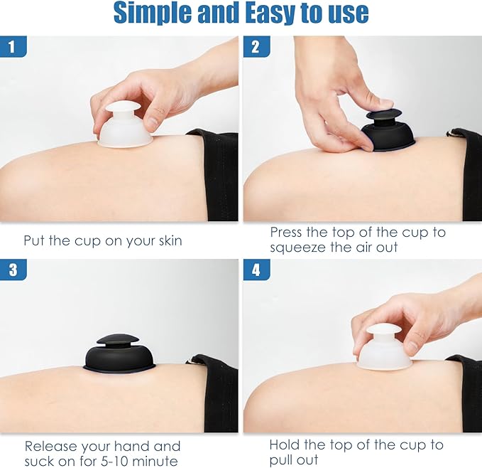 - Using method: Put the cups one the skin,Press the top of the cup to squeeze the air out, and relax then they would suck on the skin. Easy to carry and clean.