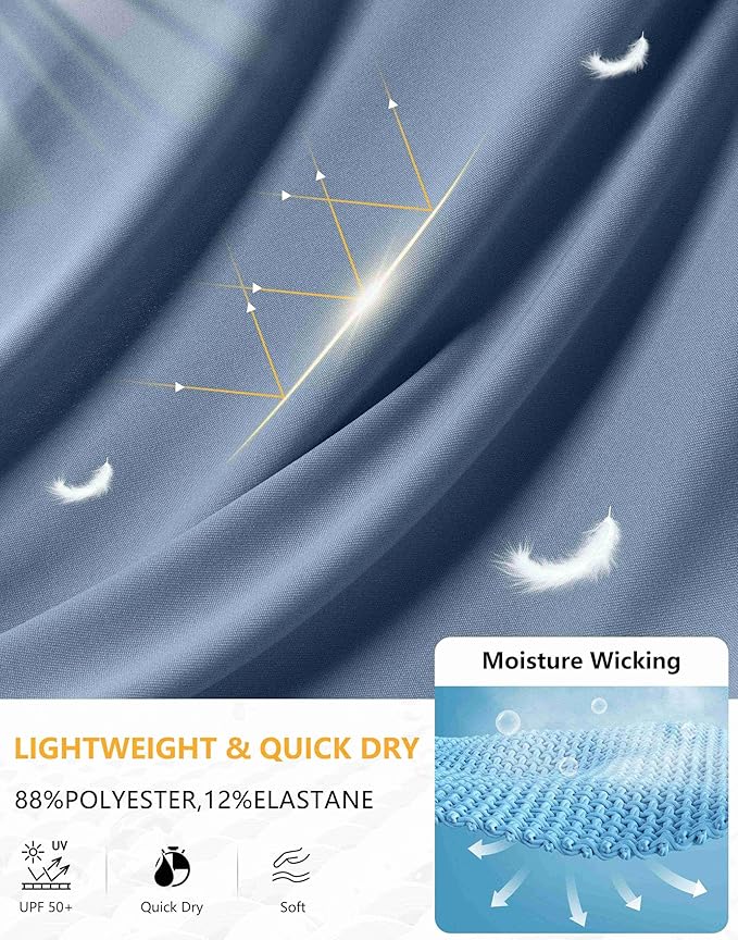 • LIGHTWEIGHT & QUICK DRY: Ultra Soft and lightweight fabric can quickly wicks moisture away from you skin, allowing for quick drying, keeps you cool and comfortable all day long