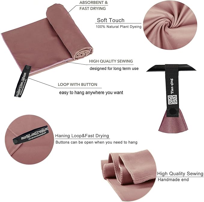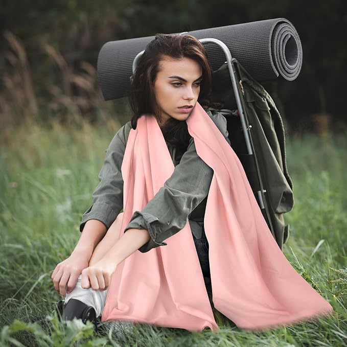 Tian qing Microfiber Towel Set, 3 Piece, Fast Drying, Soft Touch, Lightweight, Multiple Sizes for Beach, Camping, Gym, Hiking, Pool, Yoga,Travel (Light Pink, Large)