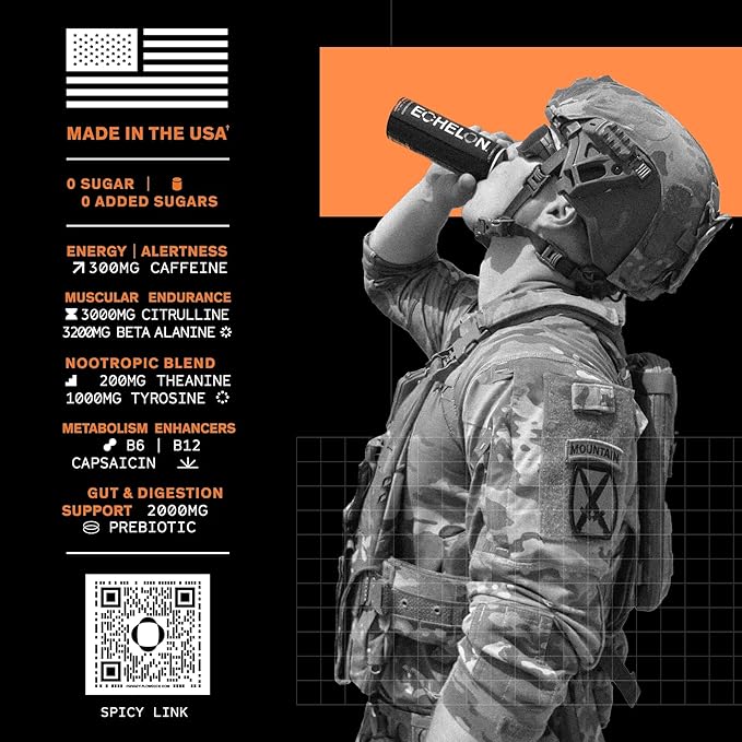 - Military-Developed Pre-Workout Energy Drink: Echelon was developed alongside over 2,000 U.S. Military service members to deliver sustained energy, focus, and endurance to power you through your workout and your entire day. Pack of 12.
