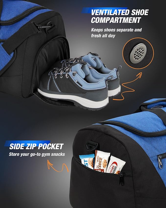 Gonex Gym Duffel Bag with Shoe Compartment Wet Pocket, Large Capacity Sports Duffle Bag for Men Women, Workout & Travel Bag with Multiple Pockets, Black/Blue, Small (30L)