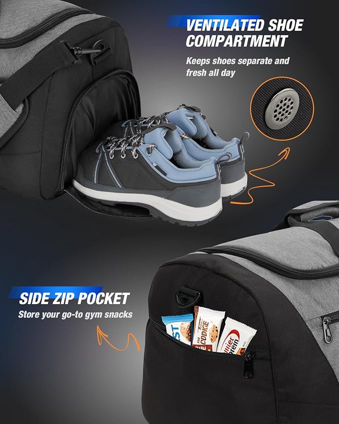 Gonex Gym Duffel Bag with Shoe Compartment Wet Pocket, Large Capacity Sports Duffle Bag for Men Women, Workout & Travel Bag with Multiple Pockets, Black/Gray, Small (30L)