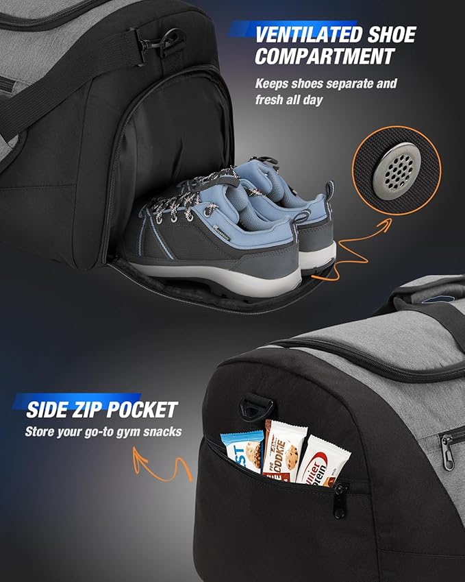 Gonex Gym Duffel Bag with Shoe Compartment Wet Pocket, Large Capacity Sports Duffle Bag for Men Women, Workout & Travel Bag with Multiple Pockets, Black/Gray, Medium (60L)