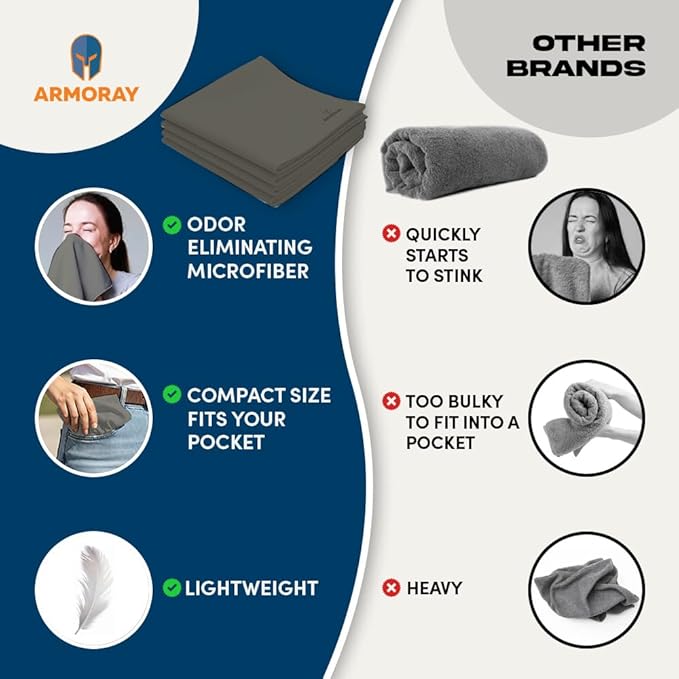 ARMORAY Sweat Absorbing Towel Handkerchief – Quick-Dry Microfiber Gym Towels for Face, Hands & Body – Workout Towel for Men, Sport Rag, Perfect for Tennis, Pickleball & Sauna Use by Women