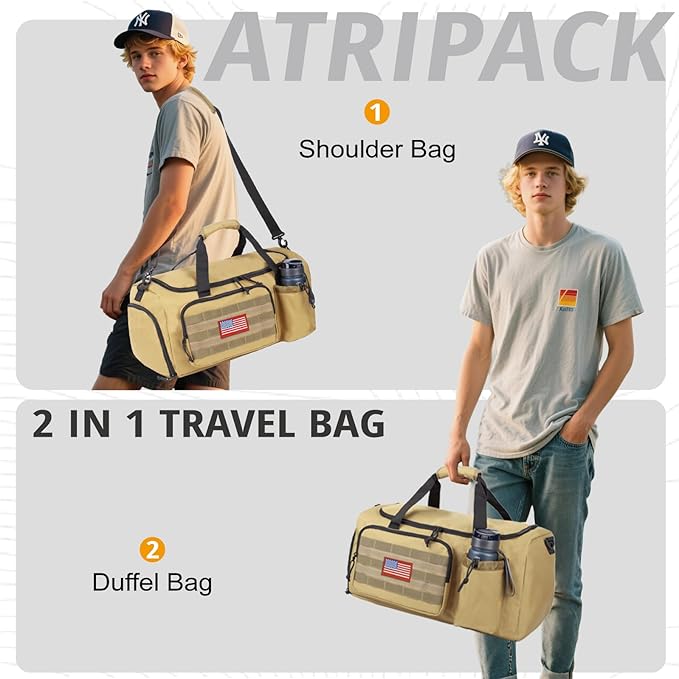 • Ideal for Various Scenarios sports duffel bag is perfect for a variety of activities. As a sports bag, it holds your workout gear, shoes, and water bottle. For travel, it accommodates clothes, toiletries, and electronics. When camping or hiking, Multiple pockets help organize camping gear, snacks, and wet items. With its spacious capacity, practical compartments, and Comfortable Design, ATRIPACK gym duffle bag is a reliable companion for any occasion.