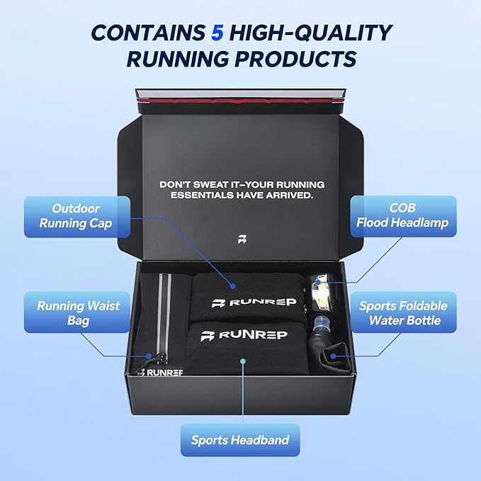 - ๐ 5 In 1 Running Gear Gift Set โ Our running gifts for women and men come with 5 carefully curated running accessories including a running waist belt, running water bottle, running headlamp, running cap, and absorbent headband making it perfect for all runners