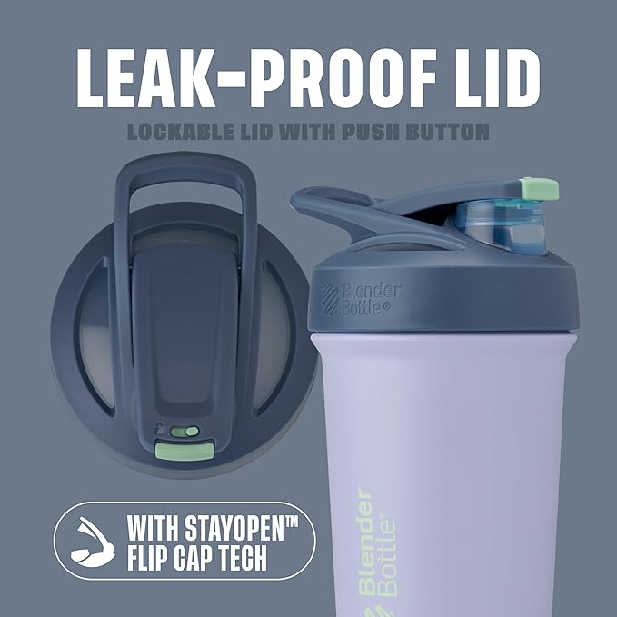 BlenderBottle Strada Sleek Shaker Cup Insulated Stainless Steel Water Bottle with Wire Whisk, 25-Ounce, Violet