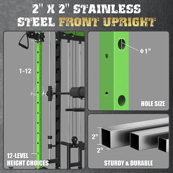 • 【Build Your Dream Home Gym】One machine can meet your various needs.It is combined with power cage,smith machine,cable crossover machine,cable station,and pull-up station,providing a complete strength training setup for home use.Perform a wide range of exercises,including squats,cable workouts,pull-ups and more.It is the ideal equipment for full-body strength training,whether it is a fitness beginner or a professional athlete,can meet diversified fitness needs.