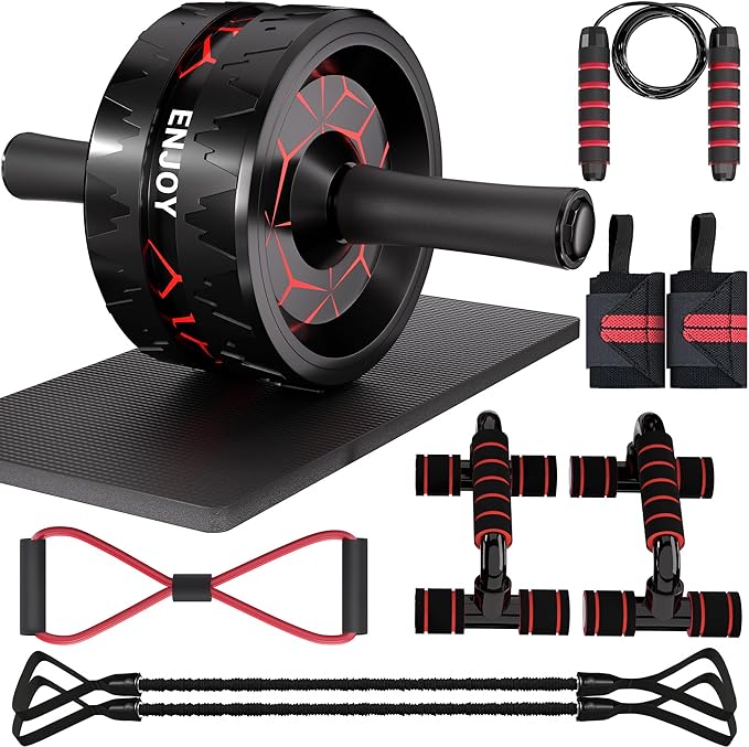 - Comprehensive Exercise Set-Ab Wheel Roller Kit : 1 AB Roller Wheel, 1 Thick Foam Knee Mat , 2 Push Up Bars Handles Grips, 2 Wrist Wraps, 1×8-shaped Stretched Band, 1 Jump Rope, 1 Guide Book, 1 Gift Box Package. 10-IN-1 ultra-wide ab roller wheel is designed to help you build stronger, bigger abdominal muscles.