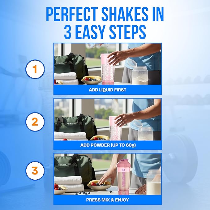 - One-Touch Power Mixing – Press once and the high-torque motor whips up a smooth 30-second vortex, then auto-stops. No shaking, no effort.