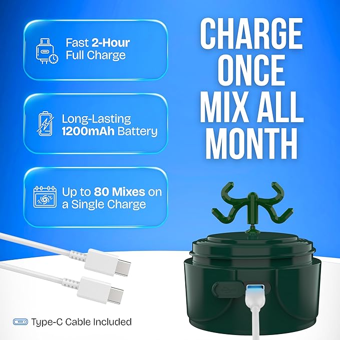- 80 Mixes Per Charge – A long-lasting 1200mAh battery gives you up to 80 blends on a single 2-hour charge. Stay fueled all week without plugging in.