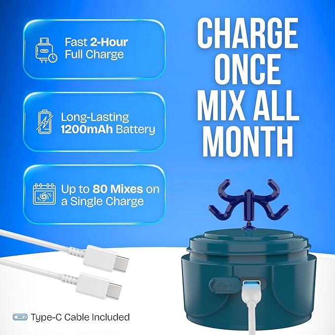 - 80 Mixes Per Charge – A long-lasting 1200mAh battery gives you up to 80 blends on a single 2-hour charge. Stay fueled all week without plugging in.