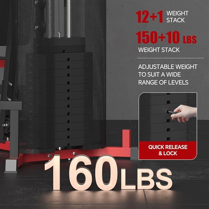 - [160LBS Weight Stack]: Adapt to your evolving strength levels effortlessly with the built-in 160LBS weight stack. Ideal home gym partner for super and drop set. Completely ditch the time and expense of replacing weights. Placing the weight has always been a hassle, and we don't want you to waste your time. Just find the right weight and begin your training!
