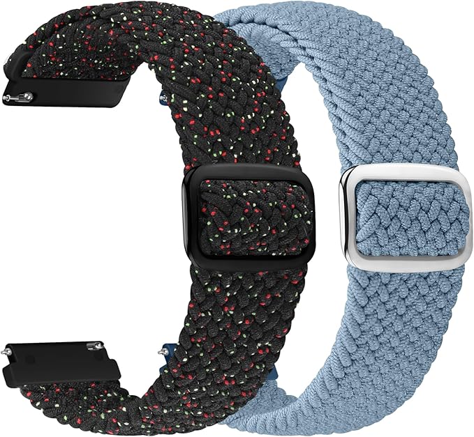2 Pack Quick Release Braided Bands - 18mm 19mm 20mm 22mm 24mm Solo Loop Adjustable Soft Band for Women Men