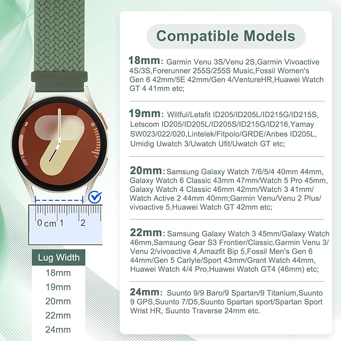 - 【22mm Compatible Models】:22mm watch bands are compatible with smart watches with 22mm wide lugs, such as Samsung Galaxy Watch 3 45mm/Galaxy Watch 46mm, Samsung Gear S3 Frontier/Classic; Garmin Venu 3/Venu 2/Vivoactive 4 45mm; Fossil Men's Gen 6 44mm/Gen 5 Carlyle/Sport 43mm etc