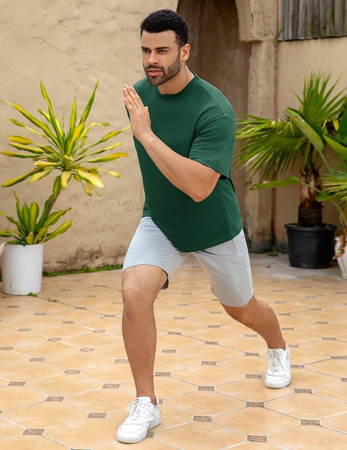 • Design:mens athletic tshirt-drop shoulder,crew neck,oversize design,solid color,loose fit tshirt.