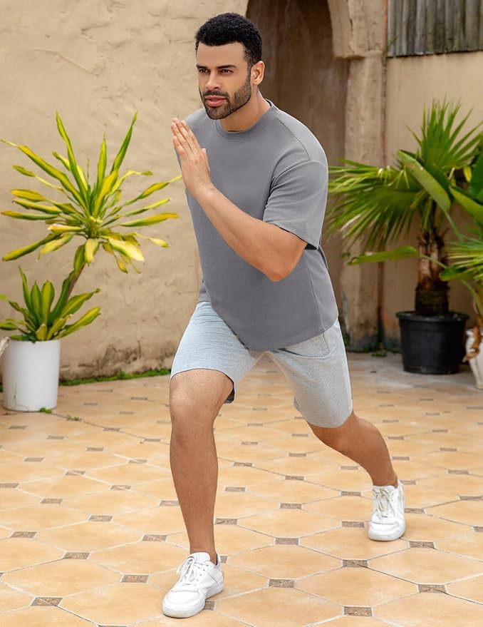 - Design:mens athletic tshirt-drop shoulder,crew neck,oversize design,solid color,loose fit tshirt.