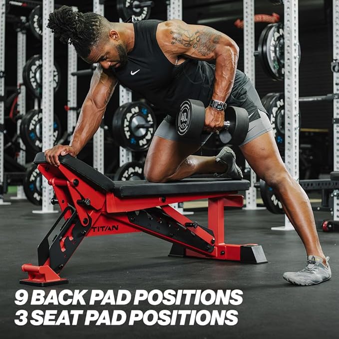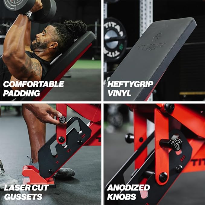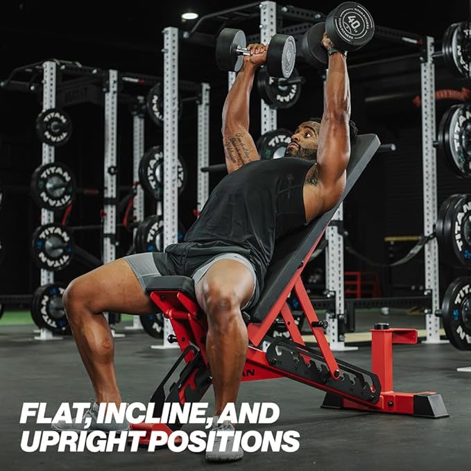 - TITAN SERIES ADJUSTABLE WEIGHT BENCH: Unleash your inner Titan with the TITAN Series Adjustable Bench, made for flat, incline, and upright positions.