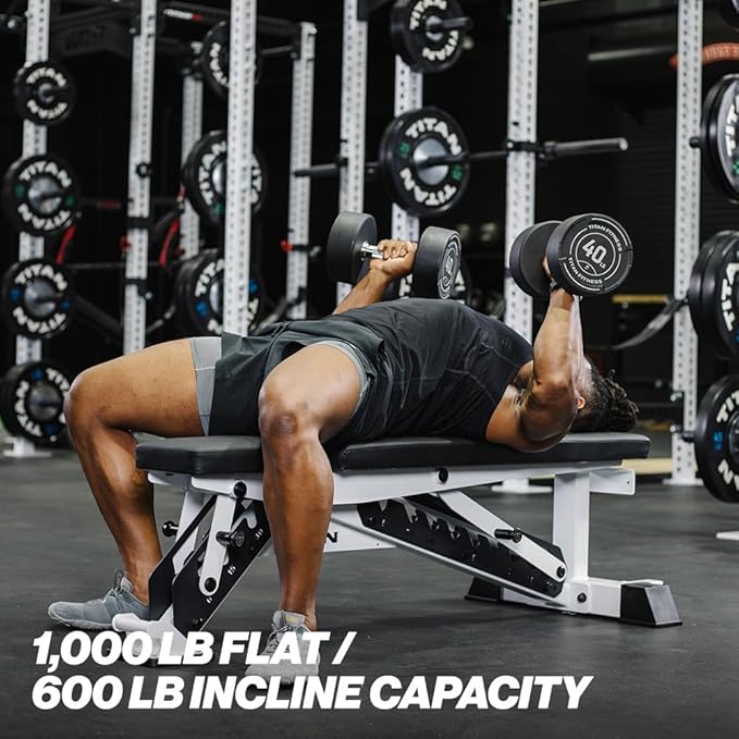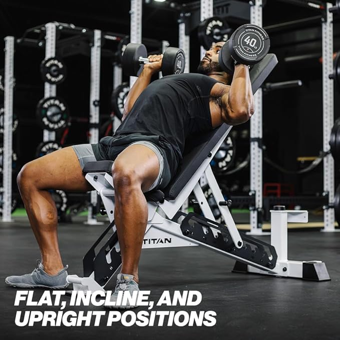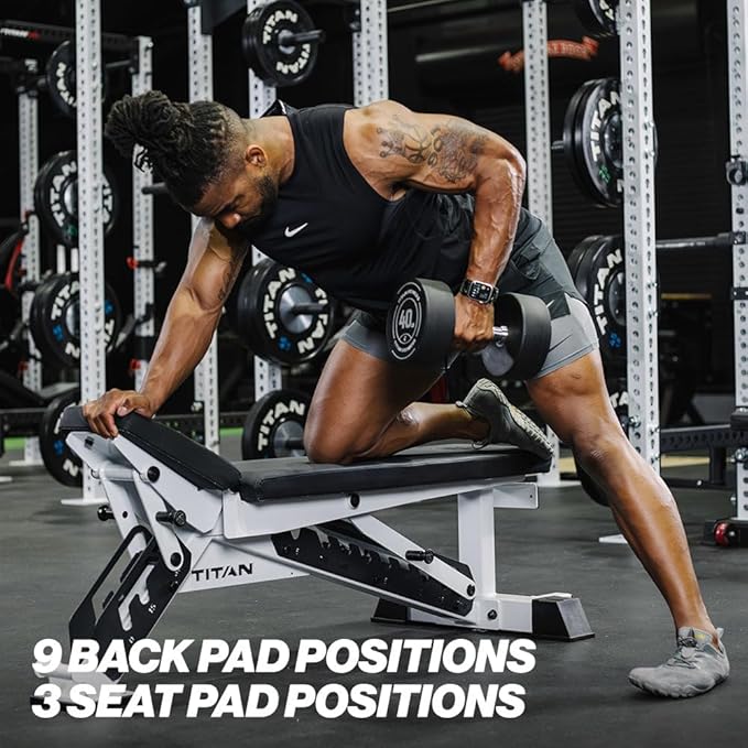 - TITAN SERIES ADJUSTABLE WEIGHT BENCH: Unleash your inner Titan with the TITAN Series Adjustable Bench, made for flat, incline, and upright positions.