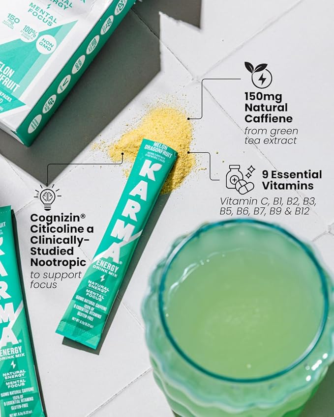 Karma Energy Hydration Packets – 6 Pack, Melon Dragonfruit Drink Mix with Cognizin® Nootropics, Vitamins & Immune Support, Low Calorie