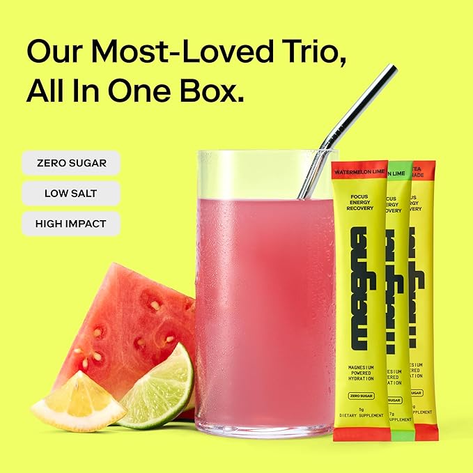 - EASY TO USE AND PERFECT FOR ON-THE-GO: Each pack of Magna dissolves quickly in at least 16 oz of water. Shake it well to mix and adjust water to customize the flavor. Magna is perfect for your busy schedule, whether at home, work, or the gym. Try all the delicious flavors, including Watermelon Lime, Tea Lemonade, Lemon Lime, and the Variety Pack, to find your favorite.
