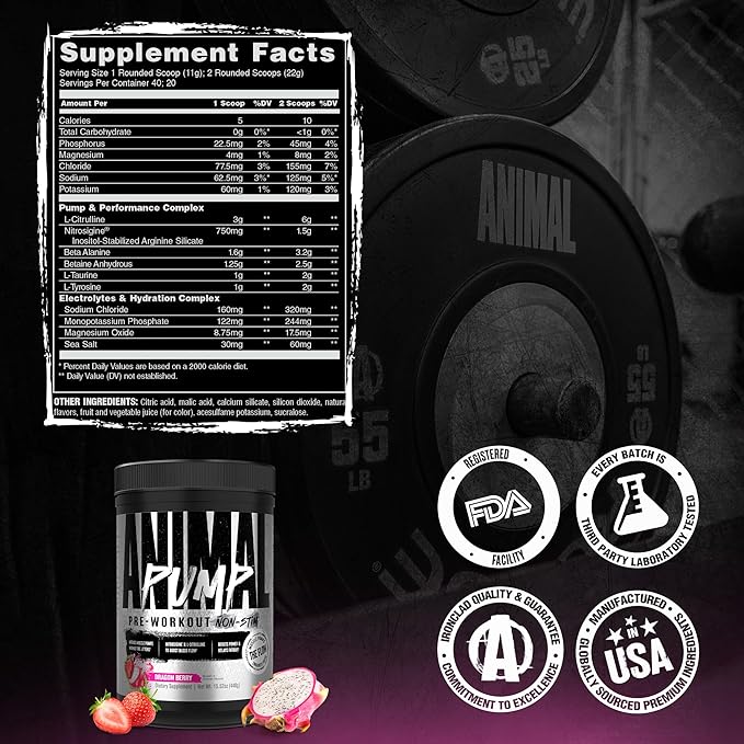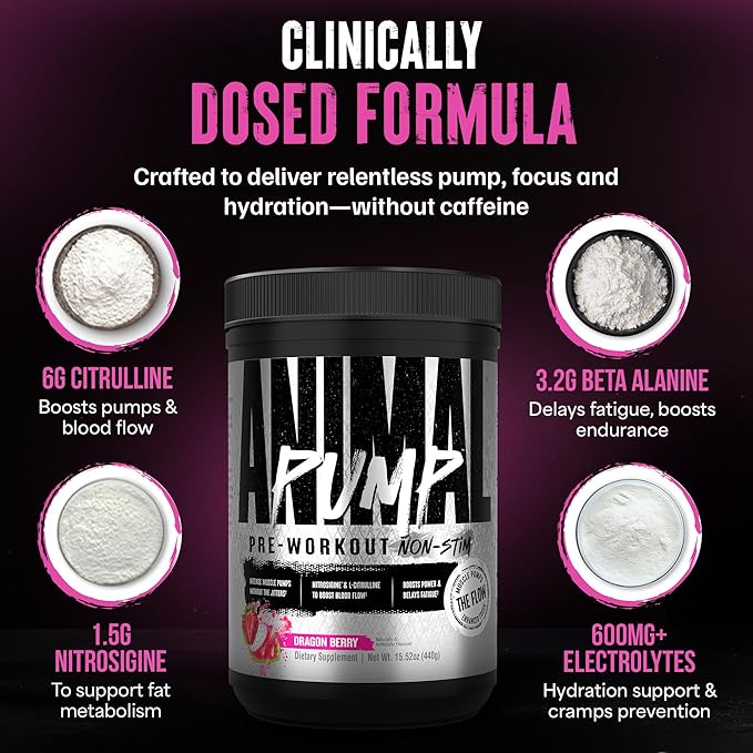 - Stimulant-Free Pre-Workout for Peak Performance - Animal Pump Non-Stim is your complete caffeine-free pre-workout solution, delivering intense muscle pumps, enhanced endurance, strength, hydration, and laser-sharp focus — all without the crash or jitters. Perfect for late-night training or those avoiding stimulants