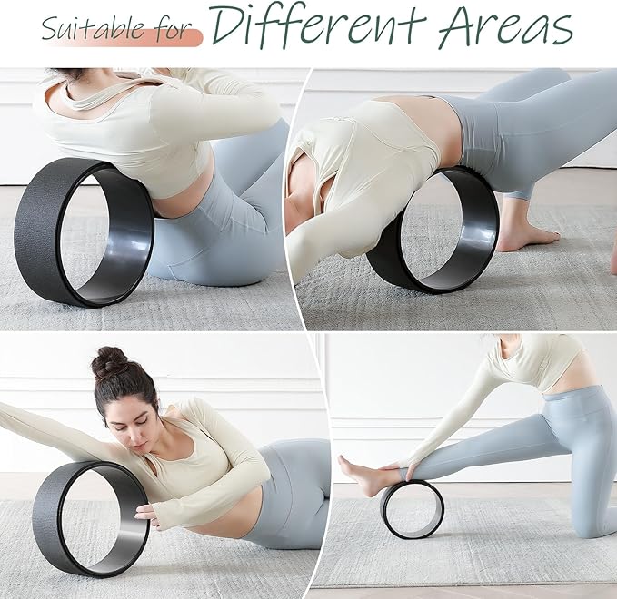 - 【IMPROVE YOUR FLEXIBILITY】Incorporate these back yoga wheel into your routine to improve flexibility,strengthen your core and release tension in your back, hips, and shoulders! To help you achieve deeper stretches and more challenging poses safely.
