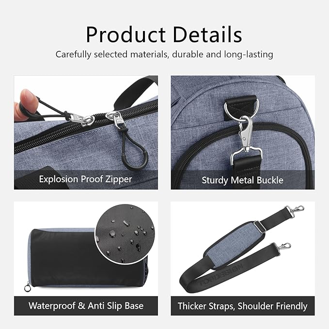 - MULTIFUNCTIONAL: It can be used for gym, sports, fitness, workout, travel, camping, hiking, cycling trip and other outdoor activities. Also good as a weekender, luggage, carry-on. The adjustable and removable shoulder strap offering flexibility for hands-free experience or a quick grab-and-go option.