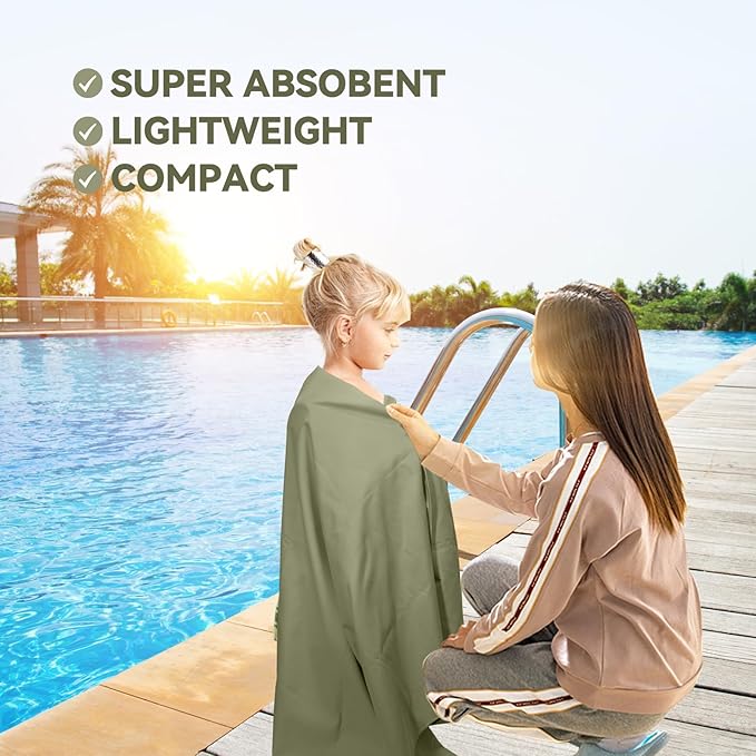 Microfiber Beach Towel-Perfect for Travel, Sports, Camping, Swimming, Yoga, Gym- Quick Dry, Sand Free, Compact, Lightweight, Absorbent (Army Green,Large(160x90cm, 63x35”))