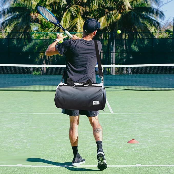 - 👍【Sport/Travel Duffle Bag】This large gym bag comes with handles and removable shoulder strap.This travel duffle bags have a shoe compartment, a main compartment with a zippered inner pocket, a TPU wet pocket,and a zippered visible mesh pocket for power bank and cable. The sport duffle bag has a mesh pocket for water bottle or foldable umbrella. It's your ideal weekend overnight bag for gym sports or travel.