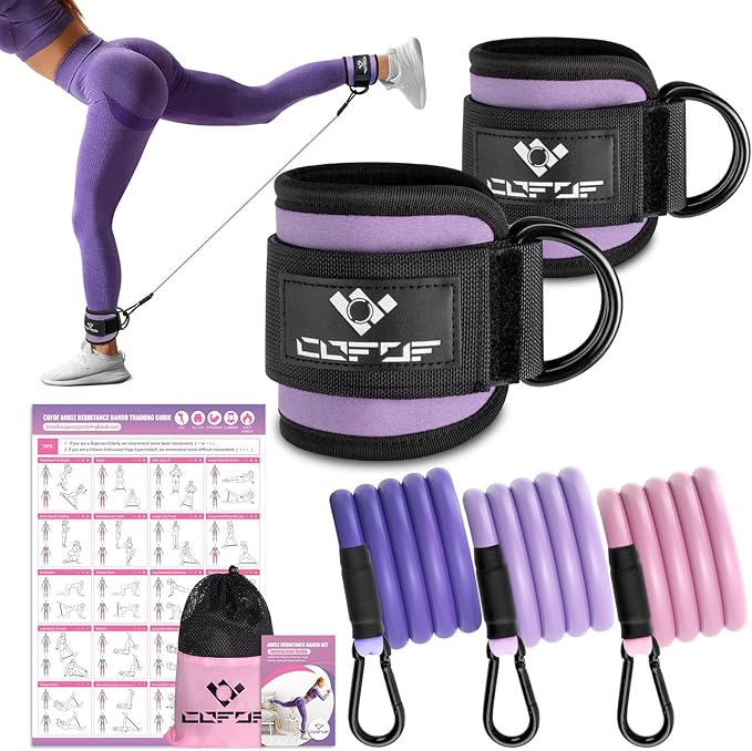 - [COFOF ANKLE RESISTANCE BANDS] We are always committed to allowing buyers to buy high-quality products while enjoying perfect services. Our Ankle Resistance Band Kit includes 2 Ankle Straps, 3 100% Natural Latex Bands, 1 Instruction Guide, 1 Training Posters and 1 Mesh Carry Bag. If you have any questions, please feel free to contact us.