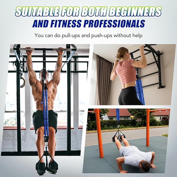 - 【Portable & Space-Saving Fitness Companion】Lightweight and compact, this pull-up assistance device comes with a travel-friendly carry bag( 1* marked webbing strap, 1* foot pedal, 4* 80LBS resistance bands , 1*user manual, and 1*storage bag.) —perfect for home gym, garage gym or on-the-go workouts. Easy to install and remove. Your ideal fitness solution anywhere, anytime.