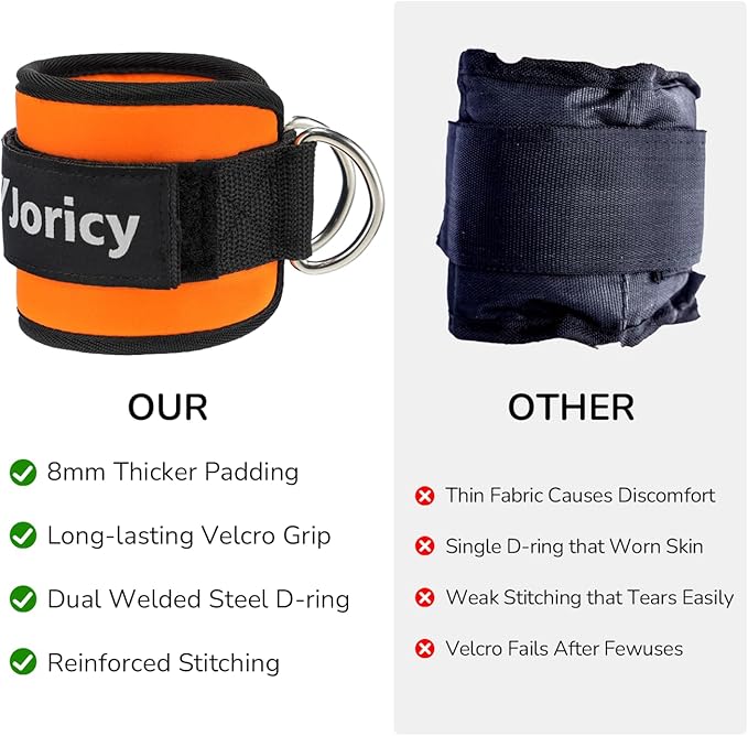 - [THICK PADDING] These workout ankle straps are comfortable with 8MM Thick soft neoprene padding fabric, it's durable, no uncomfortable scratching of the skin and don't dig into your ankles, even during heavy resistance workouts!