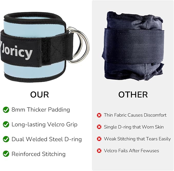 - [THICK PADDING] These ankle cable attachments for gym are comfortable with 8MM Thick soft neoprene padding fabric, it's durable, no uncomfortable scratching of the skin and don't dig into your ankles, even during heavy resistance workouts!
