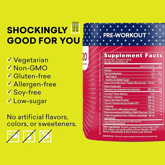 - Organically Improve: Natural amino acids, nutraceuticals, & plant-based power help fuel your circulation & flexibility for the best workout possible. Features an effervescent blend of caffeine, beta-alanine, L-tyrosine, L-theanine, and beetroot powder.