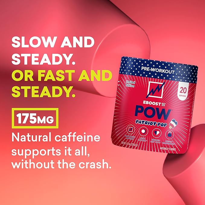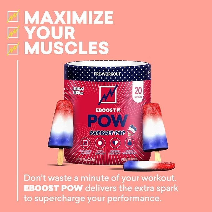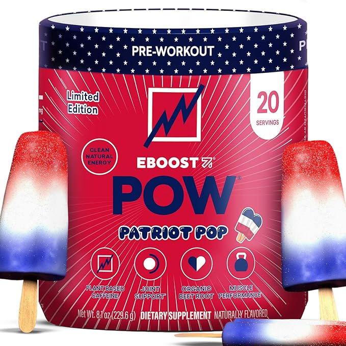 EBOOST POW Natural Pre Workout Powder - 20 Servings - Patriot Pop - Pre Workout Supplement for Performance, Joint Mobility Support, Energy, Focus - Men & Women - Non-GMO, Gluten-Free, No Creatine
