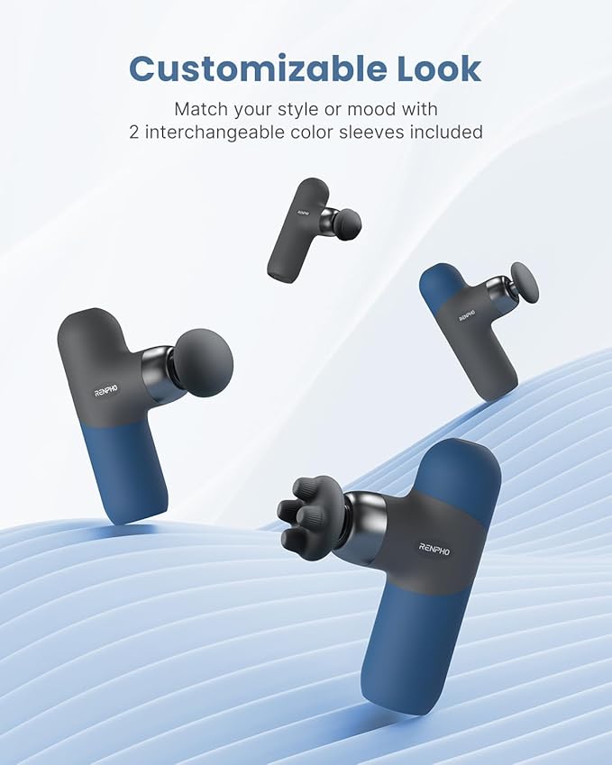 - Your Style, Your Way: The percussion massage gun's interchangeable color silicone sleeves feature both style and practicality. Mix and match colors to fit your unique style each day, while enjoying the non-slip grip and easy-to-clean surface.