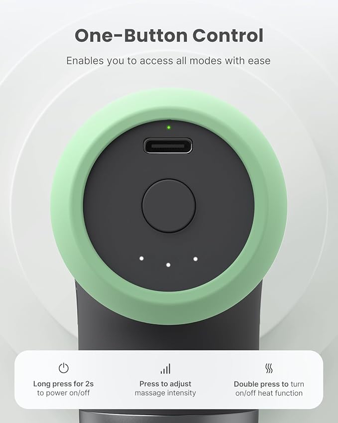 - Effective Heated Massage: Equipped with heat-conductive steel head, the deep tissue massage gun warms up to 46℃/114°F in just 1 minute, effectively reducing muscle tension and soreness.Note:Double press the Power button to enable the heating function. The light is red when the heating function is activated. Do not use the silicone massage head when using the heating function.