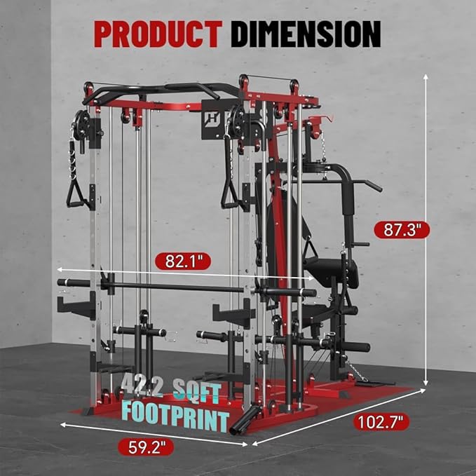 - Tailor-made Solution for Family Training: Designed for whole family gym, Tripe-Sided Independent Weight System allows at least 3 people use the cable system at the same time. This updated design combines home gym station and smithe machine, makes it perfect for exercising with your familys and achieve every physical goals of full body building.