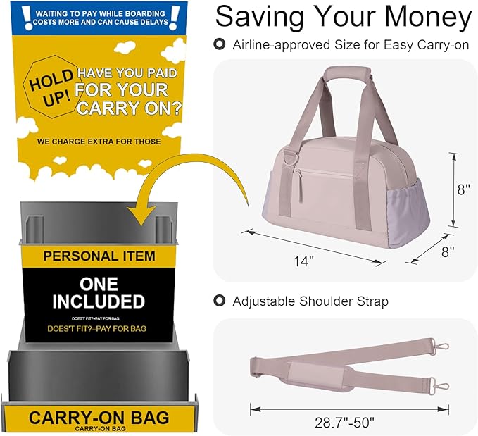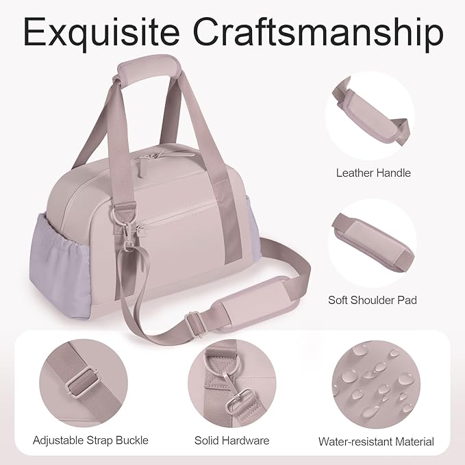 - 【Portable Size for Gym and Travel】Dimensions: 14" (L) x 8" (H) x 8" (D) | Weight: 1.54 lbs, Compact enough for carry-on flights (no extra fees!) and equipped with trolley straps for seamless travel. Despite its lightweight design, the small gym bag for women can hold all your workout or travel must-haves: clothes, cosmetics, toiletries, water bottle, electronics, and more. Whether you’re hitting the gym or a weekend getaway, this mini gym bag keeps you organized on the go.