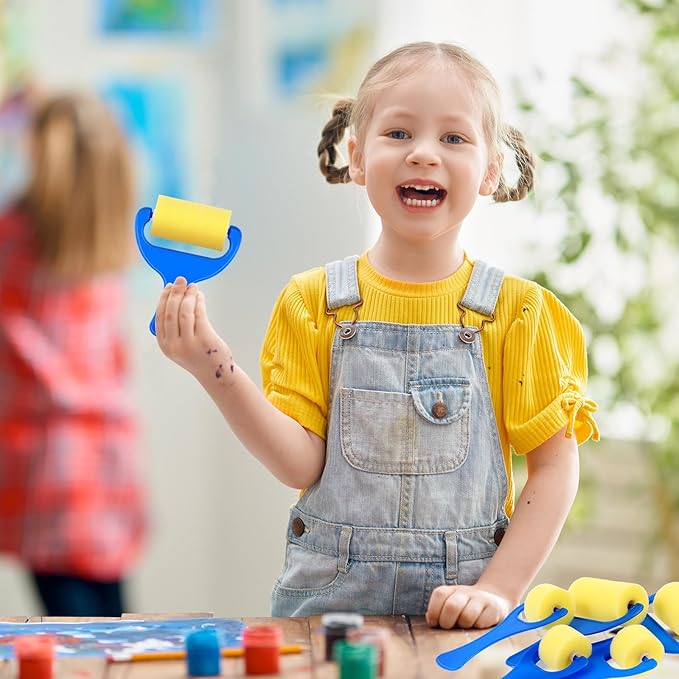 Tenceur 30 Pcs 3" Foam Paint Brushes for Kids Foam Paint Roller Small Sponge Roller with Blue Handle for Young Artists, Reusable & Washable Early Educational Supply for Crafts, Graffiti, DIY Art
