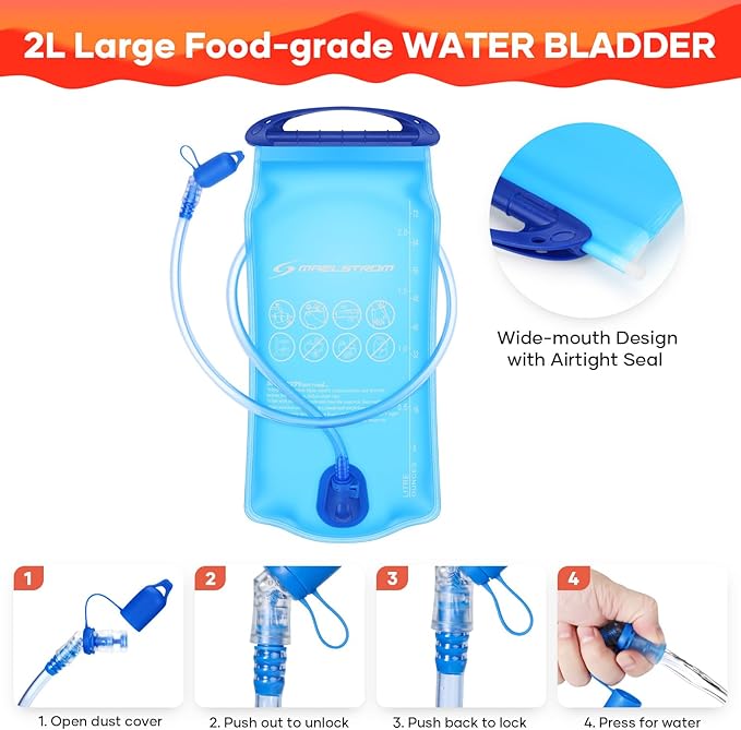 - All-in-One Hydration Solution: Maelstrom hiking backpack with water bladder combines durable nylon construction (1.1 lbs total weight) with 4 storage pockets and an aluminum-lined bladder sleeve for leak-proof, insulated cooling—perfect for hydration backpack enthusiasts.
