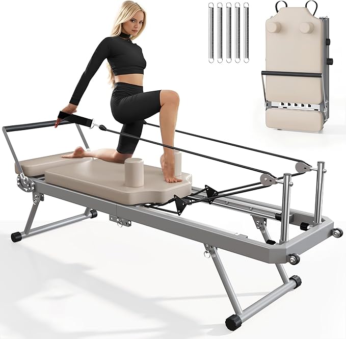 SogesPower Pilates Reformer Machine for Home Gym Workout, Foldable Pilates Equipment with High Strength Alloy Springs for Beginners, Up to 400lbs