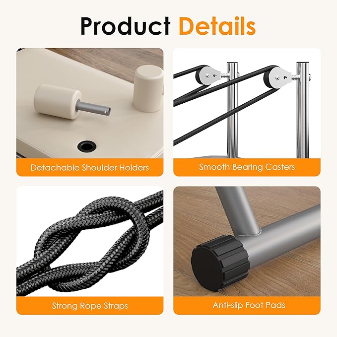 - FOLDABLE PILATES MACHINE- For homes or studios with limited space, this foldable reformer will certainly be a nice choice.The compact design can be placed anywhere in your home to save space. Built-in wheels make it easy to move the reformer.